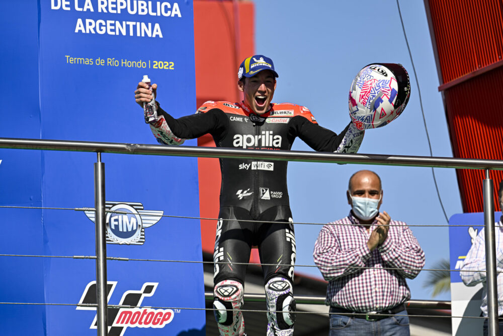 Con 32 años, Aleix Espargaró logró su primera victoria en el Gran Premio de Argentina, junto al Aprilia Racing y a Castrol. Para el fabricante con sede en Noale, una de las marcas más victoriosas en la historia de las carreras de motos, esta es la victoria número 295 en el Campeonato Mundial de Motociclismo GP, la primera en la nueva era de cuatro tiempos de la clase principal de dos ruedas después de innumerables victorias en las categorías de 125 y 250 cc.