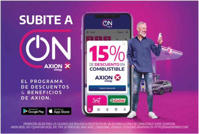 AXION energy lanzó ON, su nueva app que ofrece a los usuarios beneficios y descuentos únicos en combustibles, tiendas, lubricantes, supermercados, entretenimientos, espectáculos y deportes. Los mismos están asociados a la frecuencia de compra, nivel de consumo y tipo de productos que varían dependiendo del lugar del país en el que se encuentren.