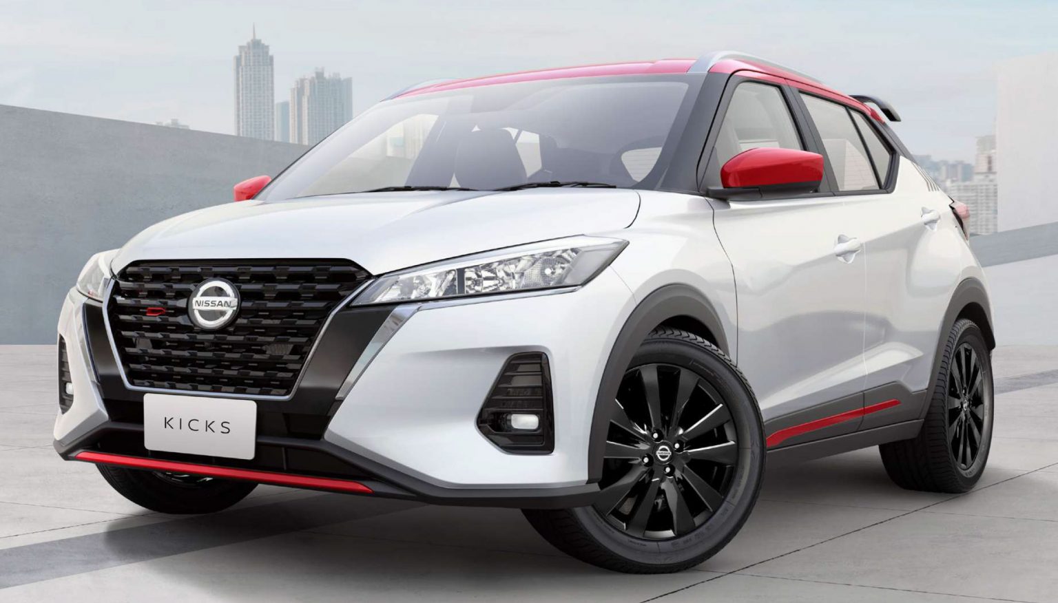 Nissan Kicks XPlay fue diseñado con una combinación de dos colores, bi-tono blanco perlado con techo rojo. La firma del nombre de edición limitada se encuentra en los umbrales de las puertas, encima de la placa de identificación en la tapa del baúl y en los asientos delanteros. En el techo, un perfil aerodinámico deportivo negro fue diseñado específicamente para esta versión y se aplicó un acabado rojo a los espejos.
