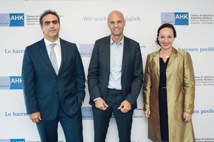 Pablo Di Si, Presidente y CEO del Grupo Volkswagen Argentina y de la Cámara de Industria y Comercio Argentino – Alemana (AHK), junto a Bárbara Konner, vicepresidente ejecutivo de AHK Argentina, recibieron a Guillermo Dietrich, ministro de Transporte de la Nación, en la nueva edición de Empresas para Empresas.