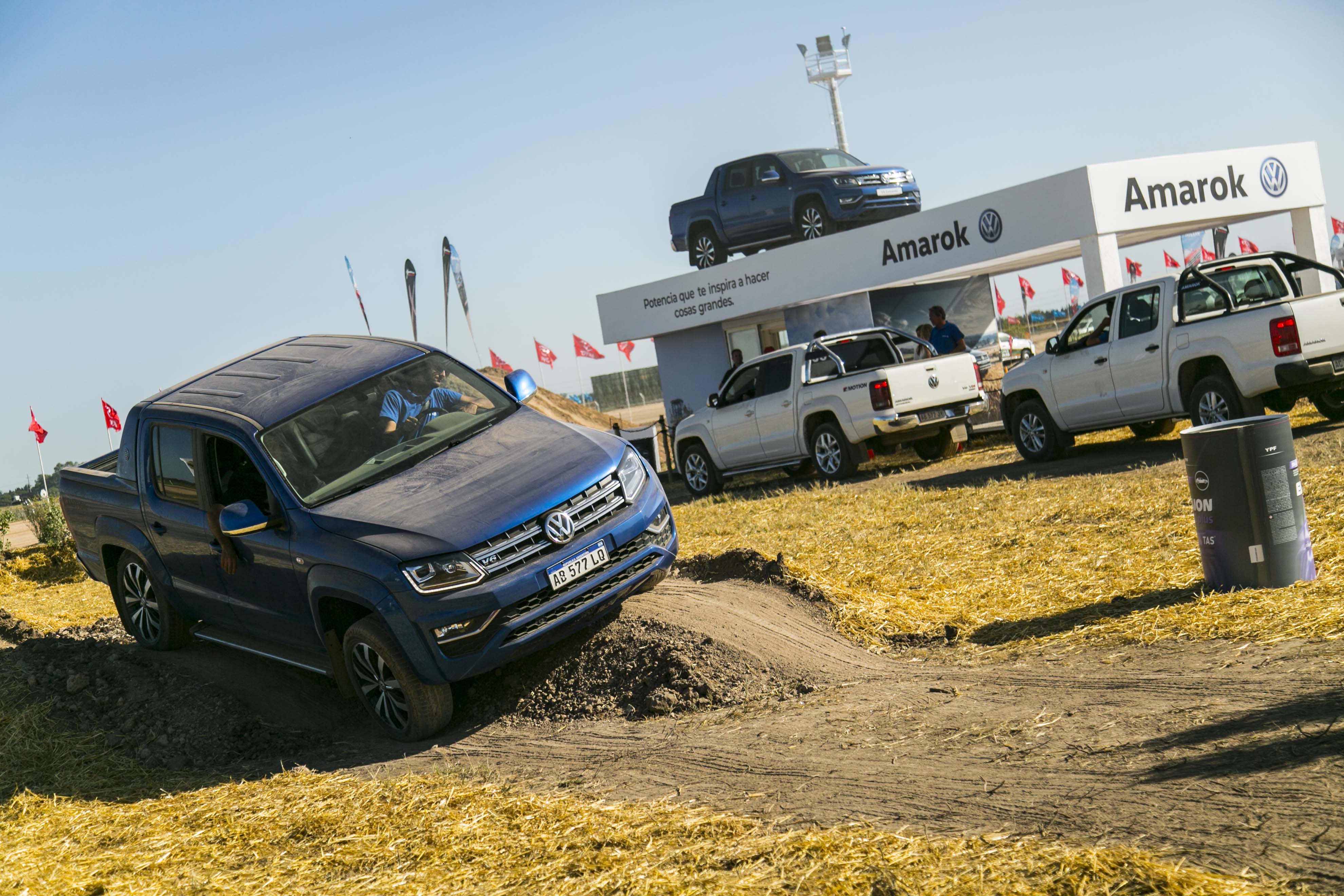 La pista de pruebas off road está montada sobre una estructura especialmente diseñada para probar la robustez y la tecnología de la pickup Amarok, una de las más avanzadas de su segmento.