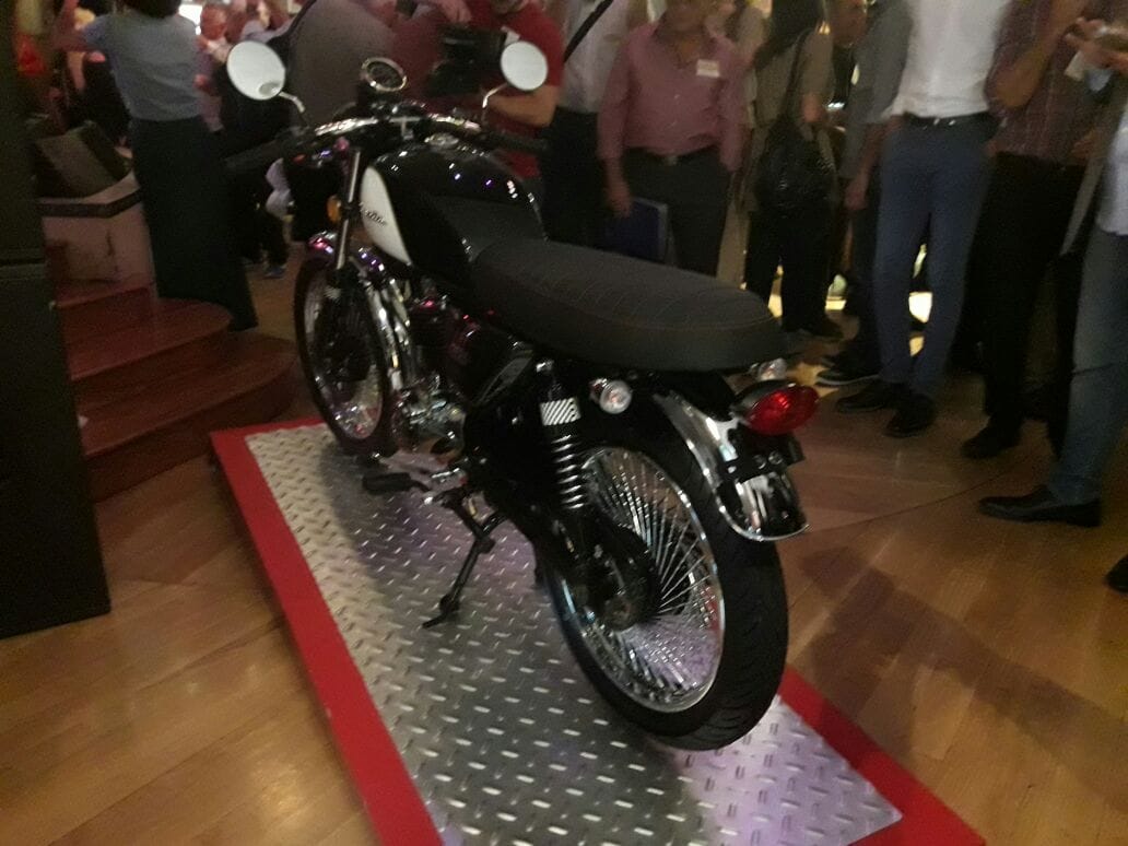 Posee manubrio y óptica estilo Café Racer, llantas de 72 rayos con diseño helicoidal, asiento tipo slammer con tratamiento antideslizante y acabado mate, y escape de diseño vintage.